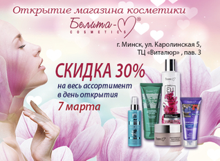 Спешим поделиться отличной новостью – завтра открывается магазин косметики «Белита-М» в новом ТЦ «Виталюр», ул. Каролинская 5 (павильон 3)! В день открытия – 07 марта – скидка 30% на весь ассортимент косметики «Белита-М». • ...