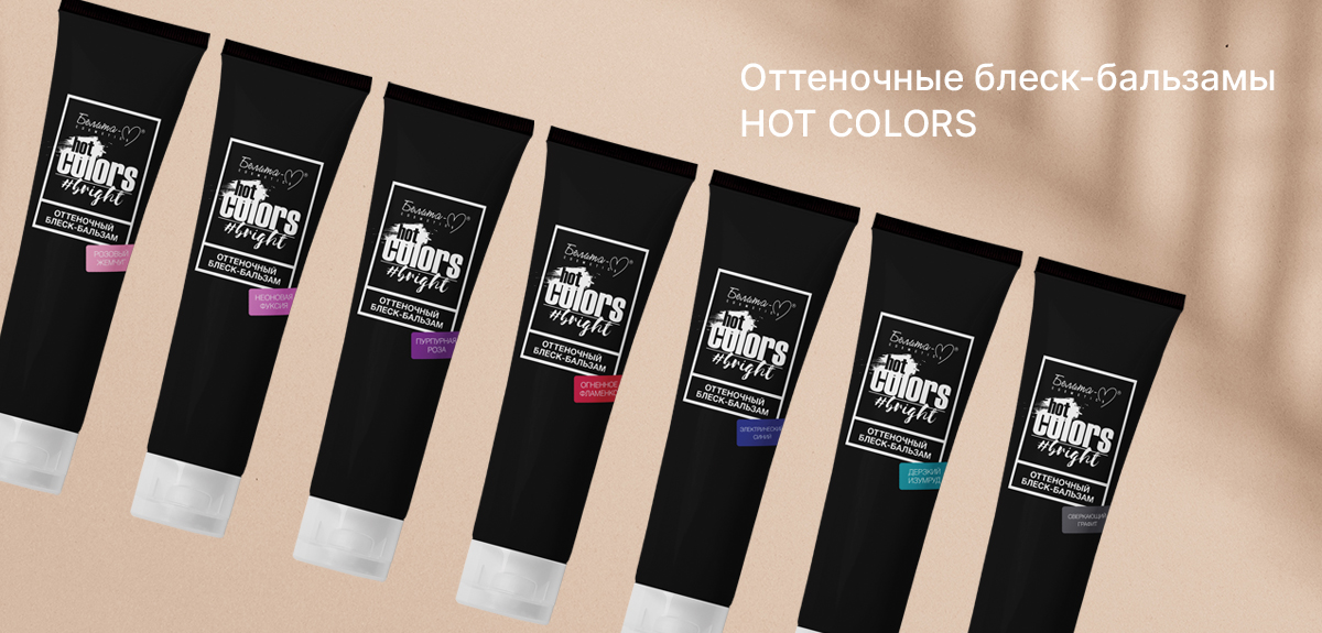 Оттеночные блеск-бальзамы hot COLORS идеально подходят для смелых и безопасных экспериментов с цветом волос: полученный тон будет смываться в течение 1-3 недель, постепенно становясь более мягким и возвращая волосам исходный цвет.